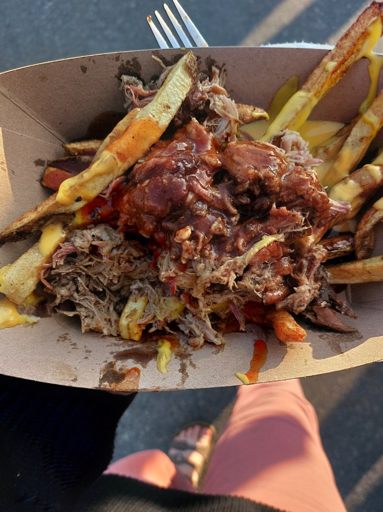 We landed in Fairbanks around 8:15pm which was 12:14am eastern time. At this point we were exhausted but also really hungry since the last time we ate was around 4pm at the Minneapolis Airport. We were lucky enough that our friend Cade picked us up from the airport and drove us home. On the way home he was telling us about the midnight sun festival happening in Fairbanks. This was for the summer solstice. It went from noon to midnight. So once we got home, we got back in our truck and went to go check it out. You probably think we are crazy after traveling for 17 hours and we did feel crazy. We went and the first food item we saw was cowboy fries. These fries were amazing. It was fresh cut fries with cheese sauce and pulled pork on top. We enjoyed them and walked around the streets to see what all was there. So many for stands and vendors. After seeing everything we decided it was time to head home after a quick stop at the store to grab a few essentials. Mainly coffee creamer for me. By the time we went to bed we were up for 23 hours. Definitely didn’t set an alarm for Sunday.