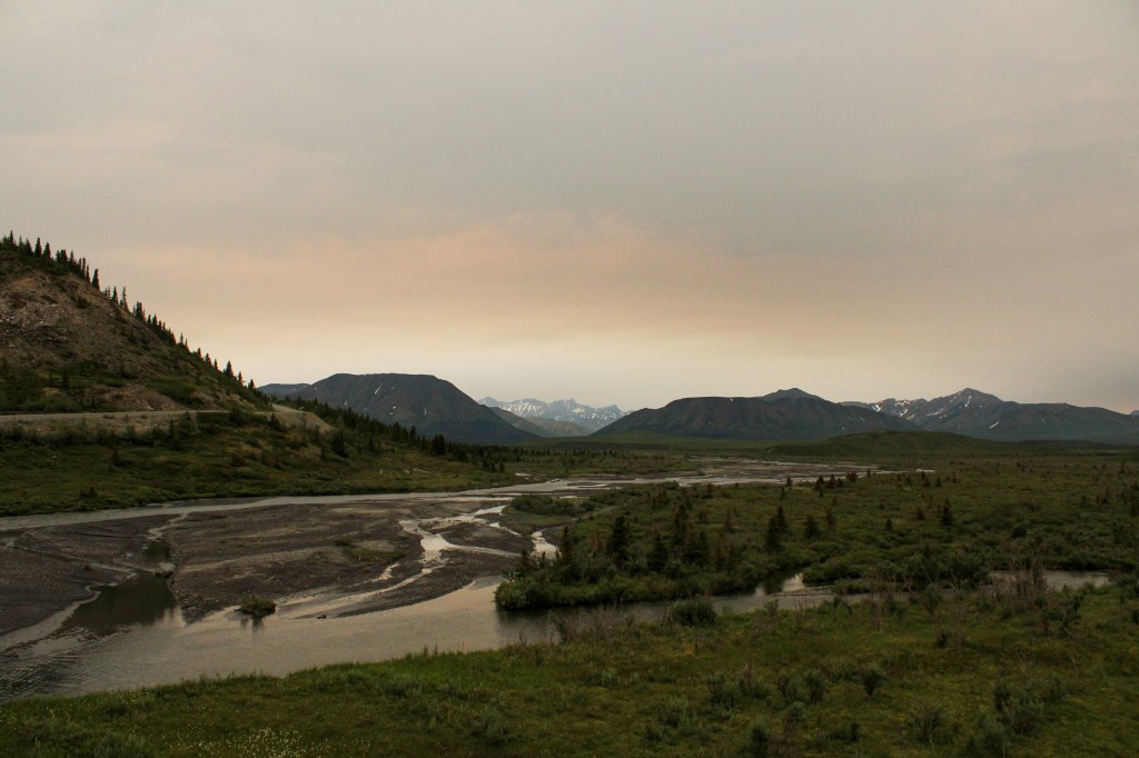 Saturday started bright and early to make our way to Denali National Park. It is about a 2 1/2 hour drive through what would normally be a beautiful drive with amaxing moutain views and potentail wildlife sightings. This drive wasn’t exactly like that. Alaska has been having a lot of wildfires so with that there is a lot of smoke in the air. The smoke prevents us from seeing the beautiful views. But once we make it closer to Denali there isnt as much smoke in the air. The air quality is a lot better than in Fairbanks. Lots of clear skies but no clear enough to see Denali. But we still saw some epic mountains and enjoyed our time.