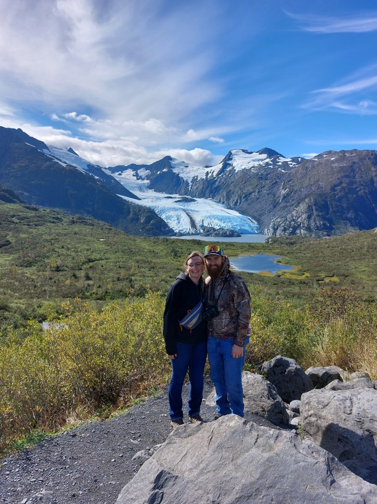 Over labor day weekend, Benjamin and I celebrated our 3rd wedding anniversary a little early. We drove down to Anchorage to spend the long weekend there. We did see my Uncle Andy, Aunt Becky and their one son Jonas for a lunch in Palmer. They had been up the week prior to do some fishing in Soldotna. It was nice to hear about their experience and to just get to catch up on all that has happened in our lives since the last time we saw them. That Sunday we drove to Whittier Alaska, which we both highly recommend. You can only get to it by a train tunnel that is open each direction for 15 minutes every half hour. But if the train comes through you have to wait a little longer. The town on Whittier is at the head of the passage canal, It is very much a fishing town. The boat yard is a massive. The entire town all lives in one building, it has the hospital, grocery store, church and post office inside with the residents. In Whittier there is a glacier that you can hike too. But don’t be fooled by the hike, it may only be 3/4 of a mile but in the 3/4 mile there is an 800 plus elevation gain. But the view from the top is gorgeous. Would totally do it again if we go back. On our way back to Fairbanks on Monday, we drove through Hatchers Pass. Which is another passageway that I would recommend traveling through. The fall colors really popped as your drove through. Right before getting to the road for Hatchers Pass there is the remains of a gold mine town. We stopped, explored and learned the history of the town from when it was booming. Then we saw the iconic red cabins that are most associated with Hatchers Pass. Hatchers Pass is only open for specific periods of time in the summer due to how dangerous the road can be.