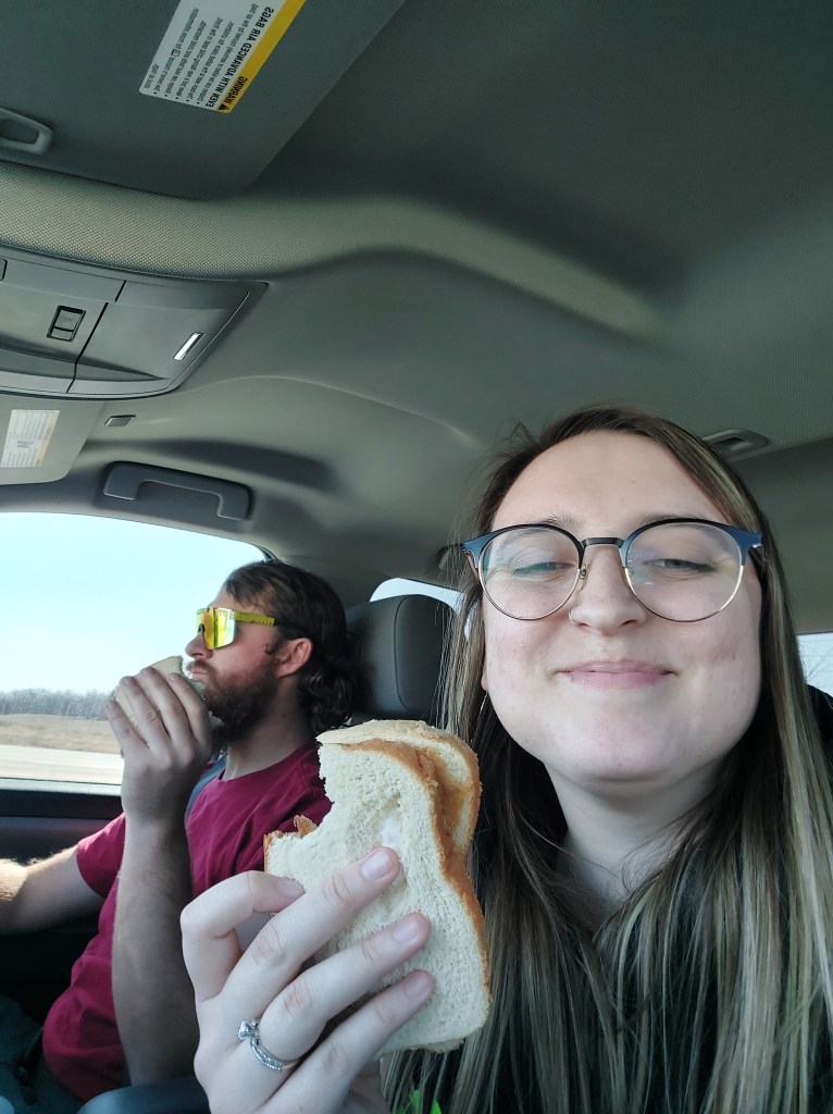 Lunch on the Road About an hour and a half into Minnesota we were officially under 3000 miles till North Pole. Yay! Not much else to note about Minnesota. I took a nap due to being so bored with nothing to look at. One interesting thing is that State Troopers have maroon cars. By 3 o’clock we reached North Dakota. Last state before the border!