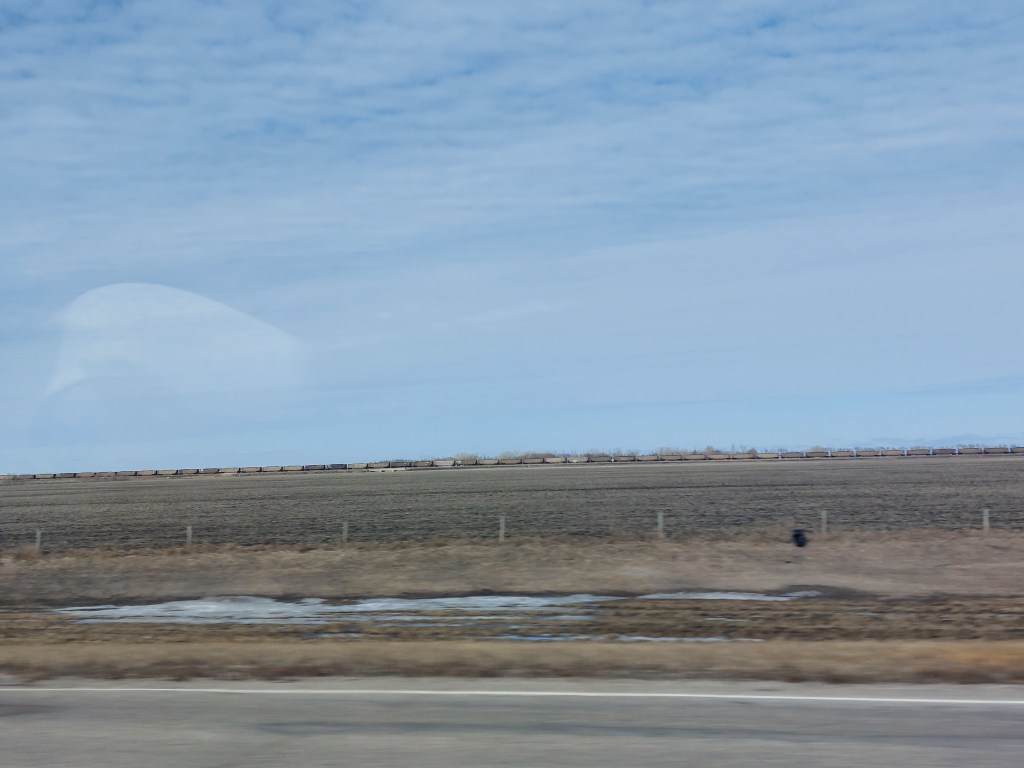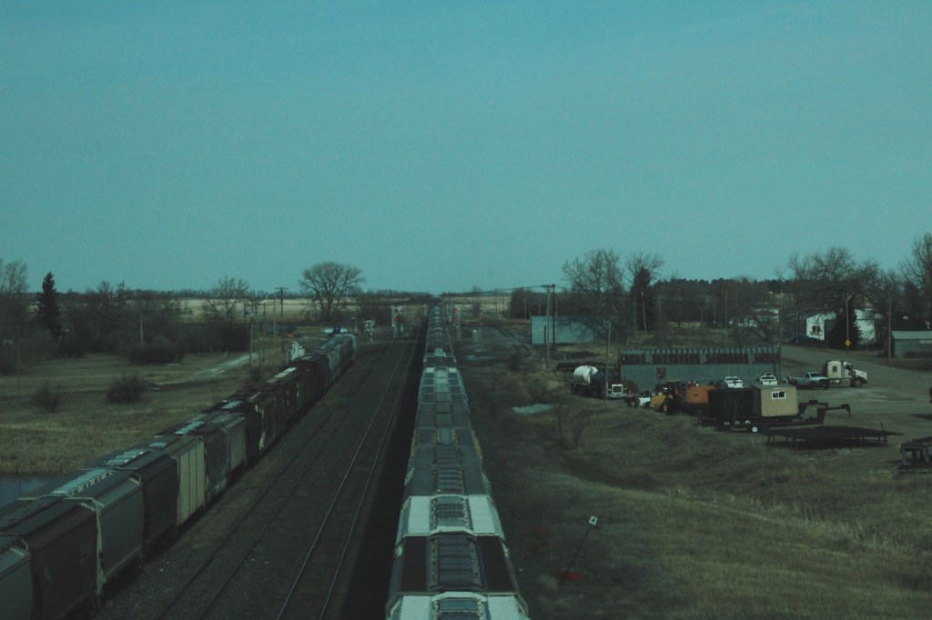 Trains for Miles The drive was going smoothly. We were well on track to get to Portal, North Dakota by night fall. To be ready to cross the border right away. Until we needed gas. We could have used a gas can in the bed of the truck but decided to play it safe and stop. That is when things took a turn. The lot was gravel and a small stone piece punctured the one trailer tire just enough that we had a slow leak. Tired to see if an auto shop was open to put a new tire. Everything was closed, expect we got lucky and found a tractor supply. They weren’t able to fix if and didn’t have the right tire. But they did have tire slime. So we purchased it and tired to use it to temporarily fix the hole. Turns out we got the one for truck tires not trailer tires. So Benjamin ran back in and got the trailer tire slime. Got it to work enough to patch the hole and limp along.