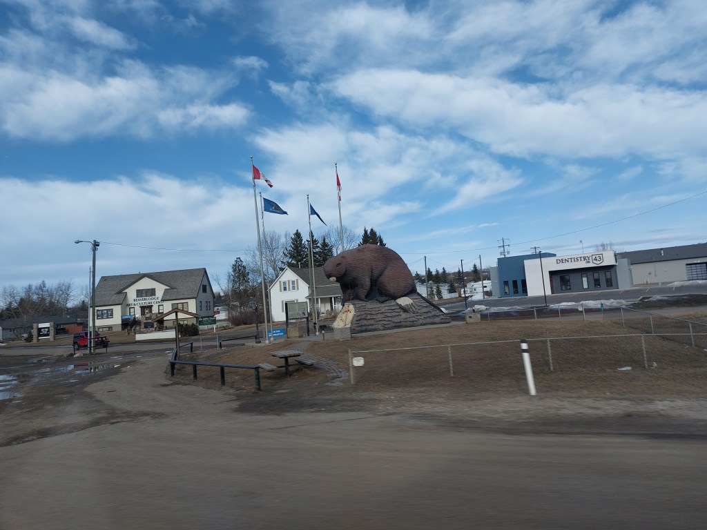We continued to drive through Northern Alberta we pass through several small towns, well technically counties. Grand Prairie was Alberta’s first county. Then there was Beaverlodge Alberta that had a massive Beaver in the center of the town.