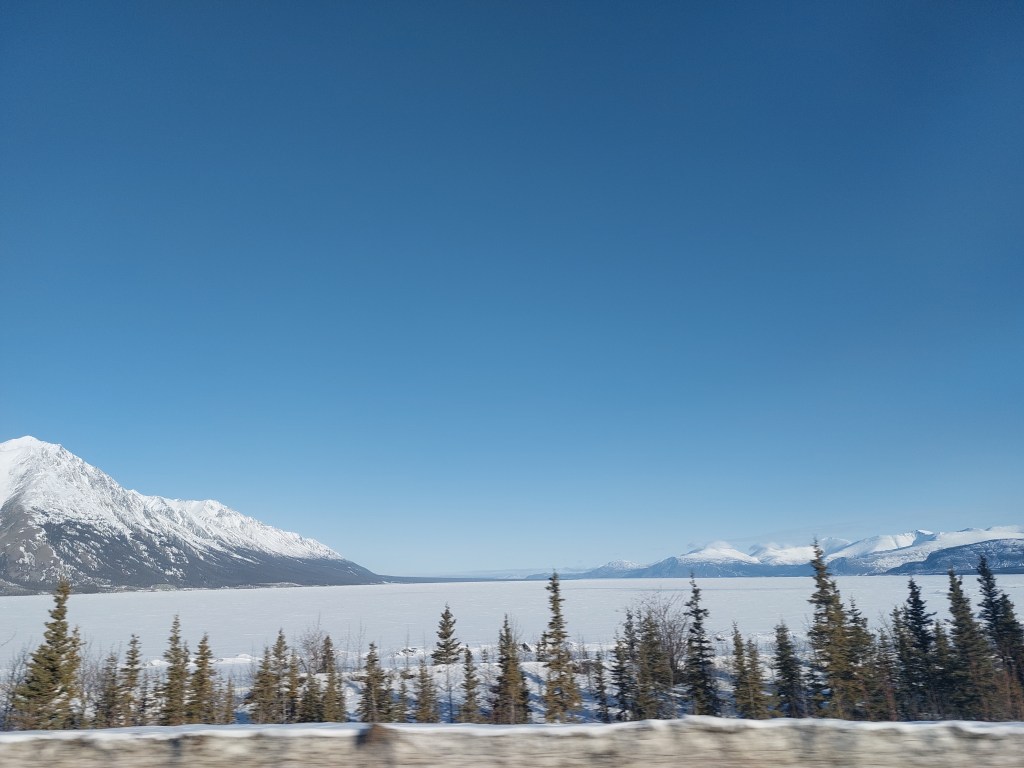 Snow Flurries That entire time we were in the Yukon. Then we crossed back into Super Natural British Columbia for some time. The road here wasn’t as nice. Trying to dodge pot holes so we don’t have another trailer tire situation. Which we didn’t but we passed a single axel Uhaul trailer on the side of the road with a blown out tire. We passed that and found any wood in the truck and knocked it. We made it through that section with no tires blowing out, which is amazing cause we also didn’t have any service.