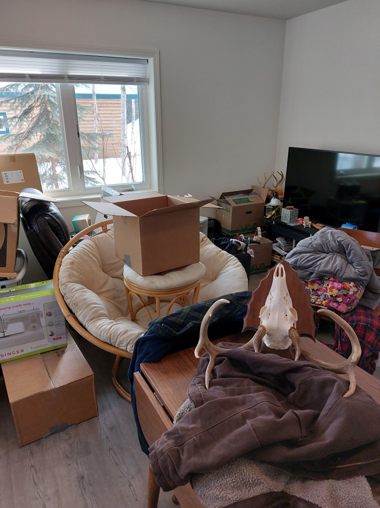 Home Sweet Home By 4pm we crossed into Fairbanks Borough. The last stretch of the trip. Passed by the Eielson Air Force Base. Where we live is between the Air Force Base and the Army Base. 5:10pm – We made it! We reached our new home. It was so nice to get out of the truck. Our awesome new friends, Cade and Nicole Kelley stopped by and helped us unload some of the trailer that night. Super thankful for them and their help. Now comes the creative part of getting everything to fit in our new home. 500 square feet isn’t a lot but we will get creative. First we got our room organized so we could sleep on our bed. Which was so nice. We finished the night by eating Cup of Noodles in bed. Crazy to think we were here almost a year ago on vacation and now we live her. God works in miraculous ways.